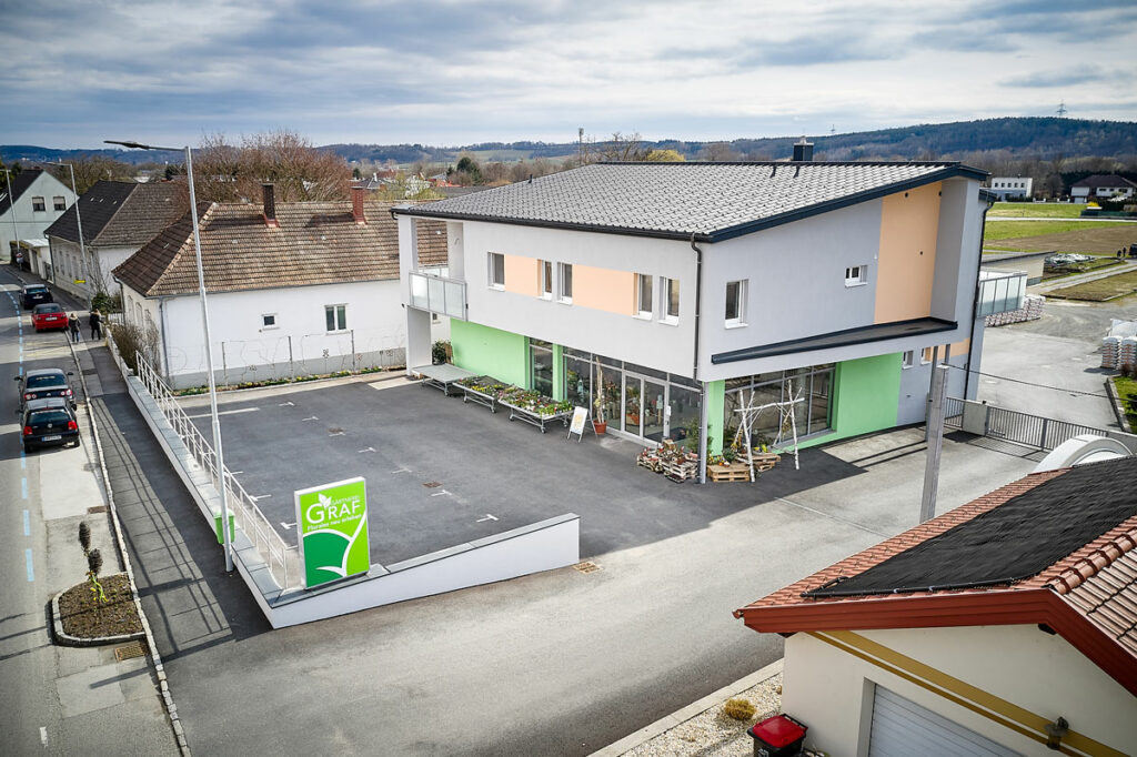 Im Juni 2018 wurde mit der Errichtung eines Geschäftslokales sowie eines Wohnhauses für das Unternehmen Gärtnerei Graf begonnen. Darüber hinaus entstanden im Erdgeschoß das Geschäftslokal für die Gärtnerei sowie Lagerräume, ein Sozialraum, ein Büro, eine Küche und ein Sanitärbereich – sowohl für Kunden – als auch für das Personal.